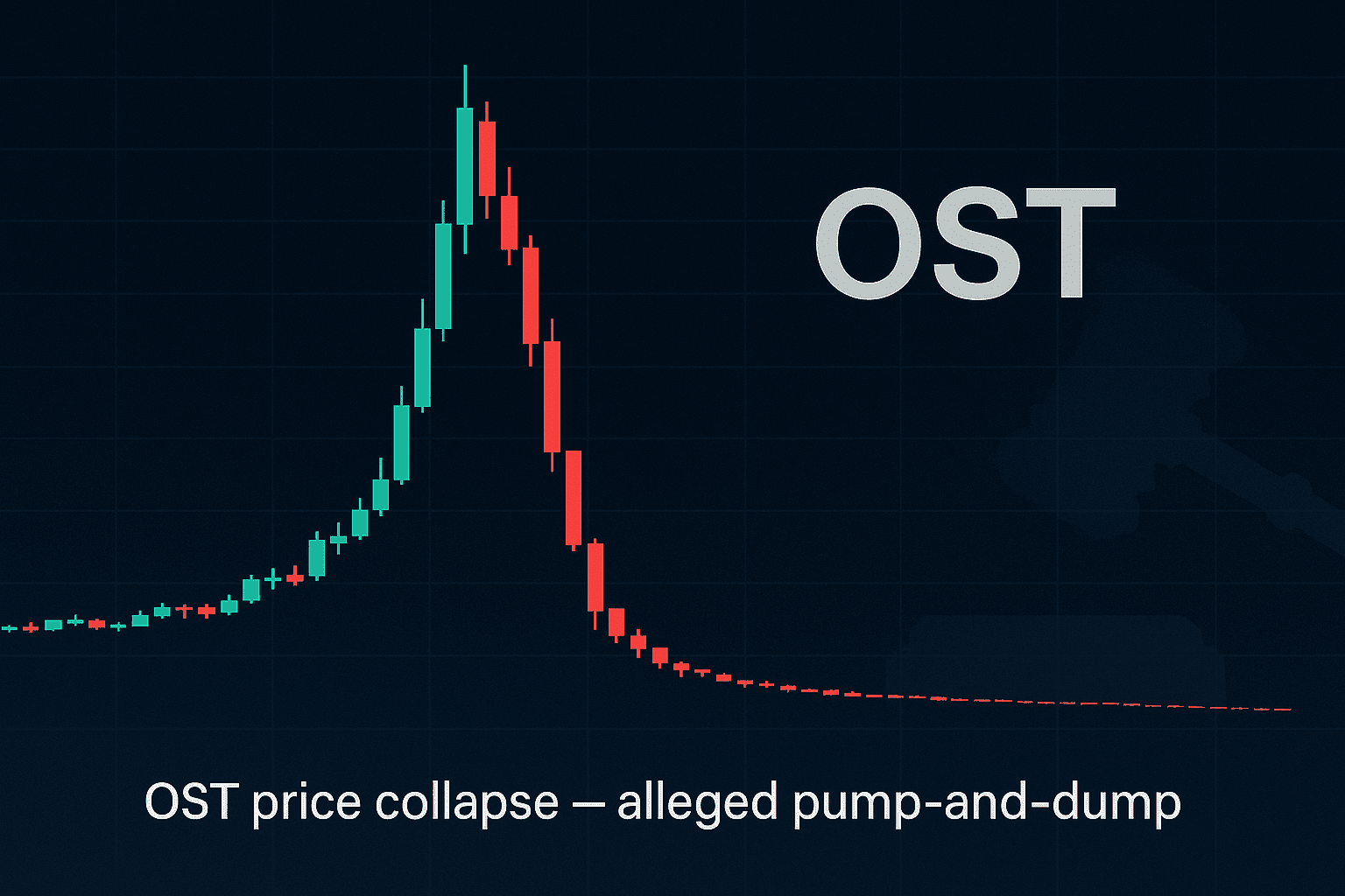 According to DOJ, Sen and Zhao first siphoned OST shares to about 15 co‑conspirators through two sham transactions. On April 15, 2025—the day the first discounted tranche landed—a fraudulent promo blitz kicked off to inflate price and volume. Brokerage accounts were opened for select investors to unload the paper into artificially stoked demand. When the music stopped, retail bag‑holders absorbed the damage as OST’s value cratered on June 26, 2025 (Source: justice.gov).